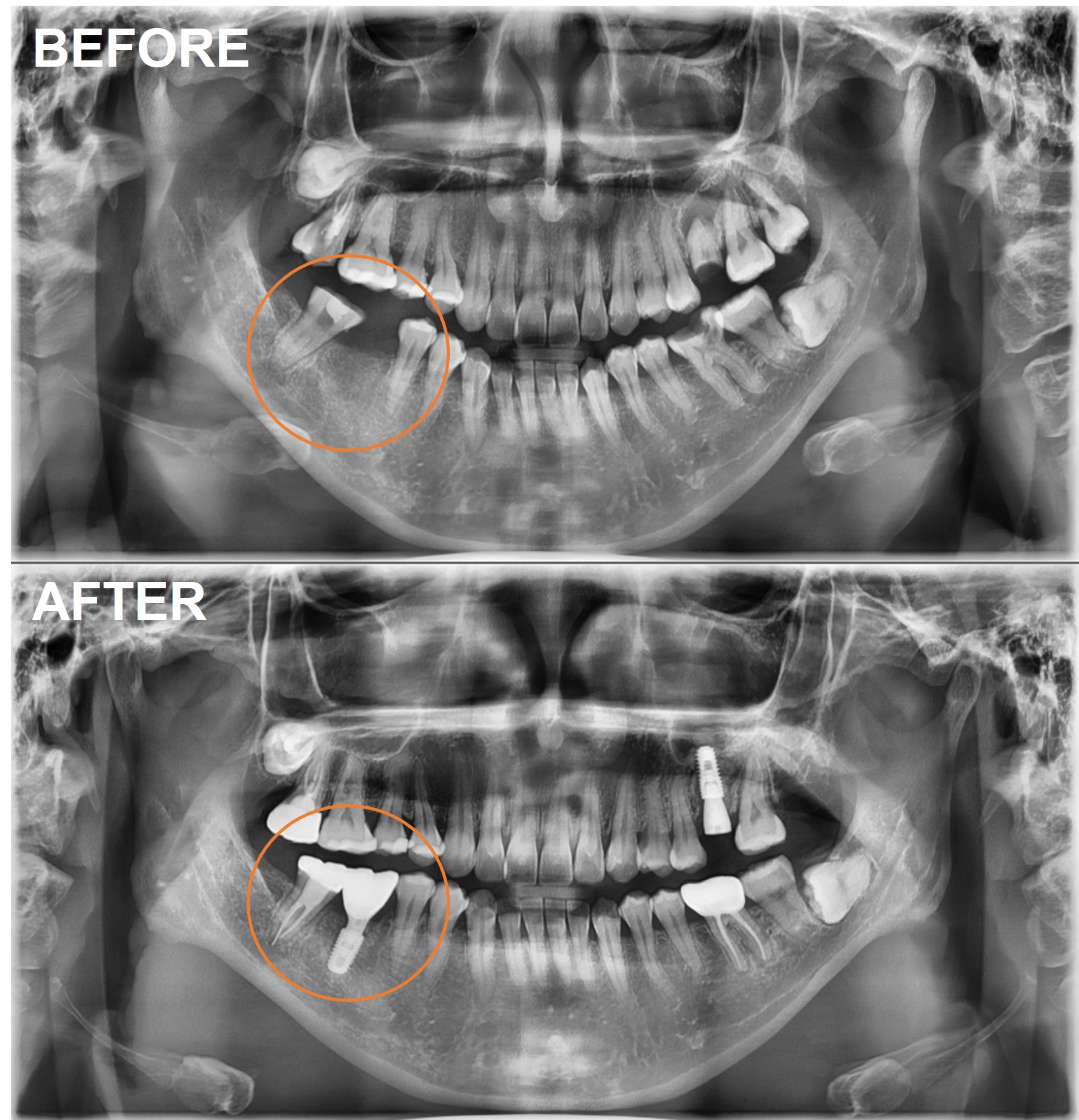 검단가온치과 임플란트 크라운 치료 전후 파노라마 X-RAY