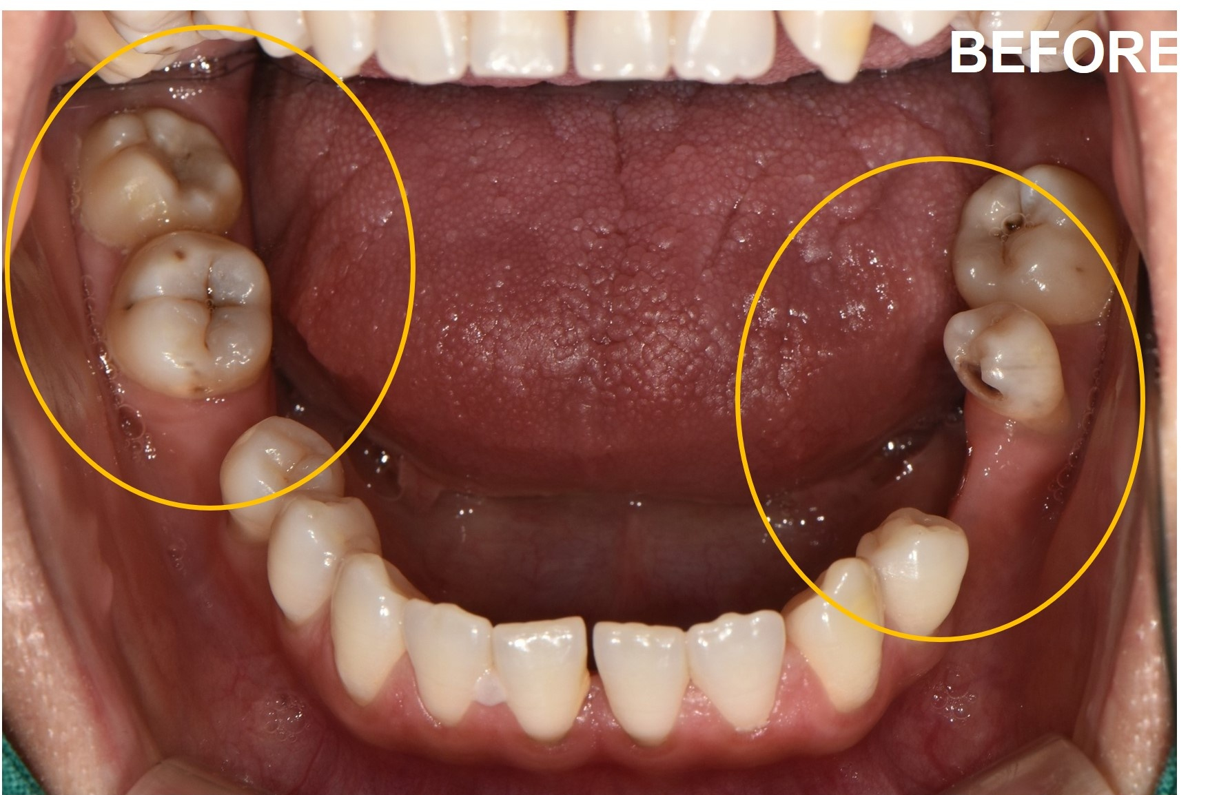 환자분은 양쪽 아래 어금니가 없었습니다.